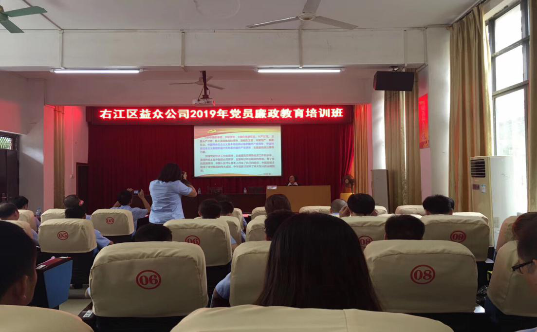 為積極響應(yīng)黨中央關(guān)于黨風(fēng)廉政建設(shè)的號召,強(qiáng)化公司員工廉潔從業(yè)意識(shí),營造良好的企業(yè)氛圍。7月19日,益眾投資公司組織部門負(fù)責(zé)人、黨員職工、業(yè)務(wù)骨干等一行共55人在右江區(qū)委黨校進(jìn)行黨員廉政教育培訓(xùn)。