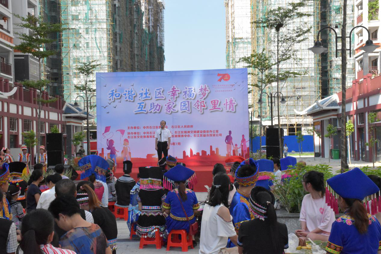 ??????????? 2019年7月27日,為慶祝新中國成立70周年,紀念百色起義90周年,由區(qū)委宣傳部組織的2019百色市右江區(qū)《我和我的祖國》大型快閃表演活動分會場暨第二屆“老鄉(xiāng)家園”鄰里節(jié),在老鄉(xiāng)家園-迎龍易地扶貧搬遷安置小鎮(zhèn)舉行。右江區(qū)區(qū)委常委、宣傳部部長、區(qū)人民政府副區(qū)長王世凡等,以及區(qū)直相關部門領導和公司有關領導參加此次活動。