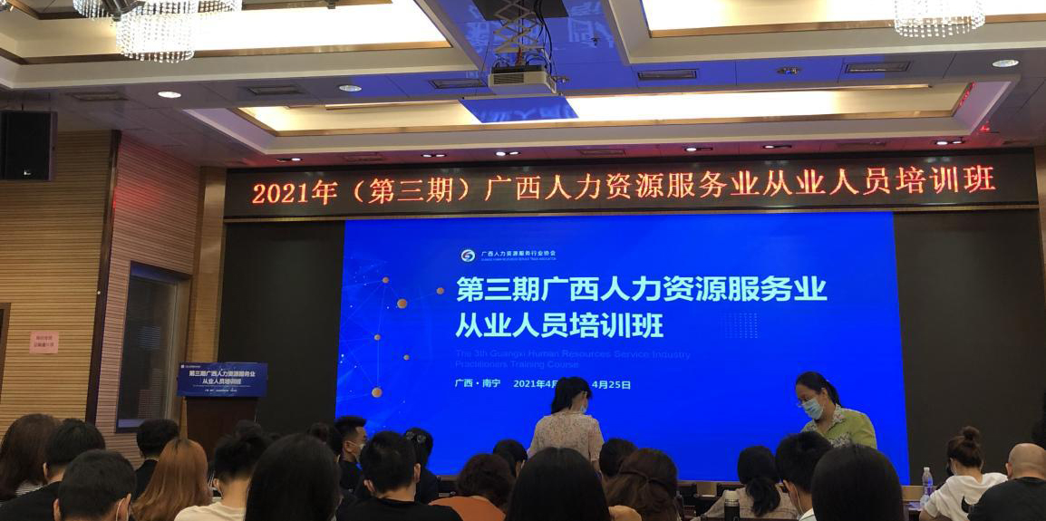 ????????2021年(第三期)廣西人力資源服務業(yè)從業(yè)人員培訓班近日在南寧舉辦,各市企事業(yè)單位從事人力資源工作人員,以及全區(qū)各類人力資源服務機構(gòu)從業(yè)人員參加培訓,益嘉人資公司派一人參加。