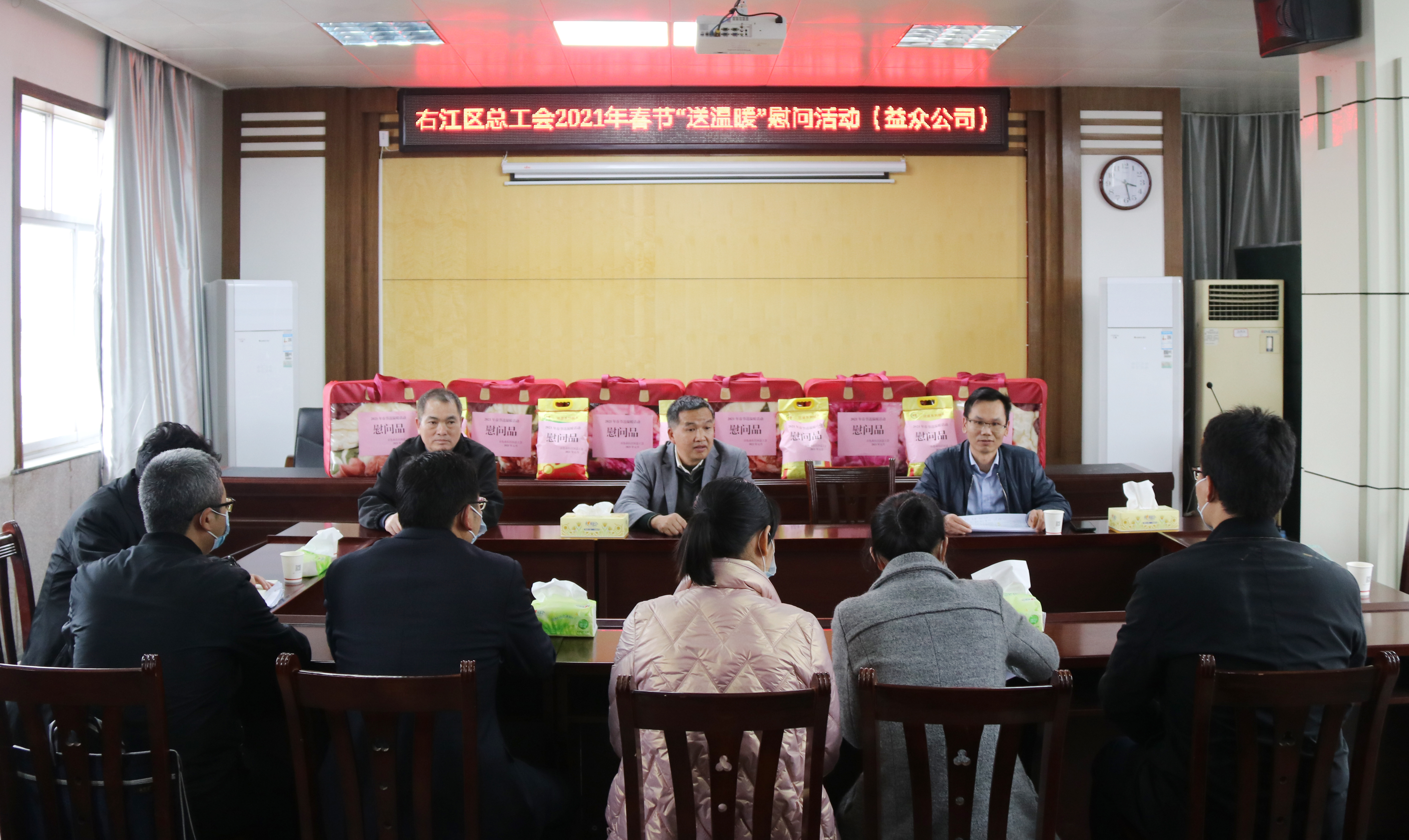 ????????1月26日下午,百色市右江區(qū)總工會(huì)黨組成員、副主席黃有路一行到益眾公司慰問(wèn)廣西區(qū)外職工春節(jié)留右職工代表,把黨委政府的關(guān)懷和工會(huì)組織的溫暖及時(shí)送到職工的心坎上。