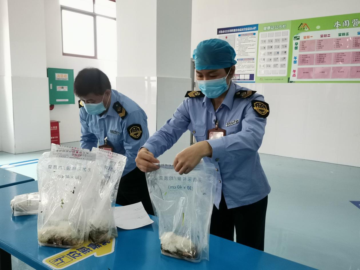 右江區(qū)市場監(jiān)督管理局到益眾托管校區(qū)開展食品安全抽樣檢查