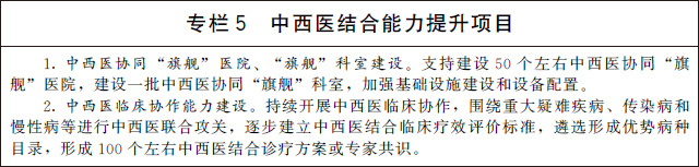 4.健全其他醫(yī)療機構(gòu)中醫(yī)藥科室。強化綜合醫(yī)院、??漆t(yī)院和婦幼保健機構(gòu)中醫(yī)臨床科室、中藥房建設(shè),有條件的二級以上公立綜合醫(yī)院設(shè)立中醫(yī)病區(qū)和中醫(yī)綜合治療區(qū)。鼓勵社會辦醫(yī)療機構(gòu)設(shè)置中醫(yī)藥科室。
