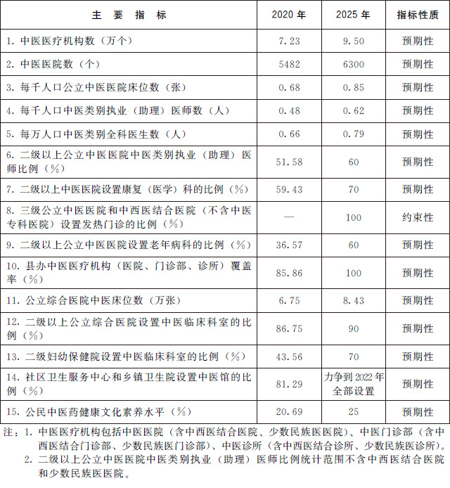 (三)發(fā)展目標(biāo)。到2025年,中醫(yī)藥健康服務(wù)能力明顯增強,中醫(yī)藥高質(zhì)量發(fā)展政策和體系進一步完善,中醫(yī)藥振興發(fā)展取得積極成效,在健康中國建設(shè)中的獨特優(yōu)勢得到充分發(fā)揮。